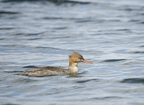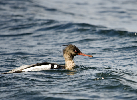 The streamlined red-breasted merganser is a handsome bird and a great fisher - its long, serrated bill helps it to catch and hold its slippery fish prey. It is most commonly spotted around the coast in winter.